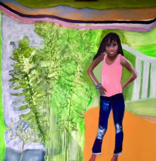 Mixed media on canvas, 90 x 90cm. This painting is based on a photo of a young girl in Monrovia, Liberia who lives in my mother's old house.